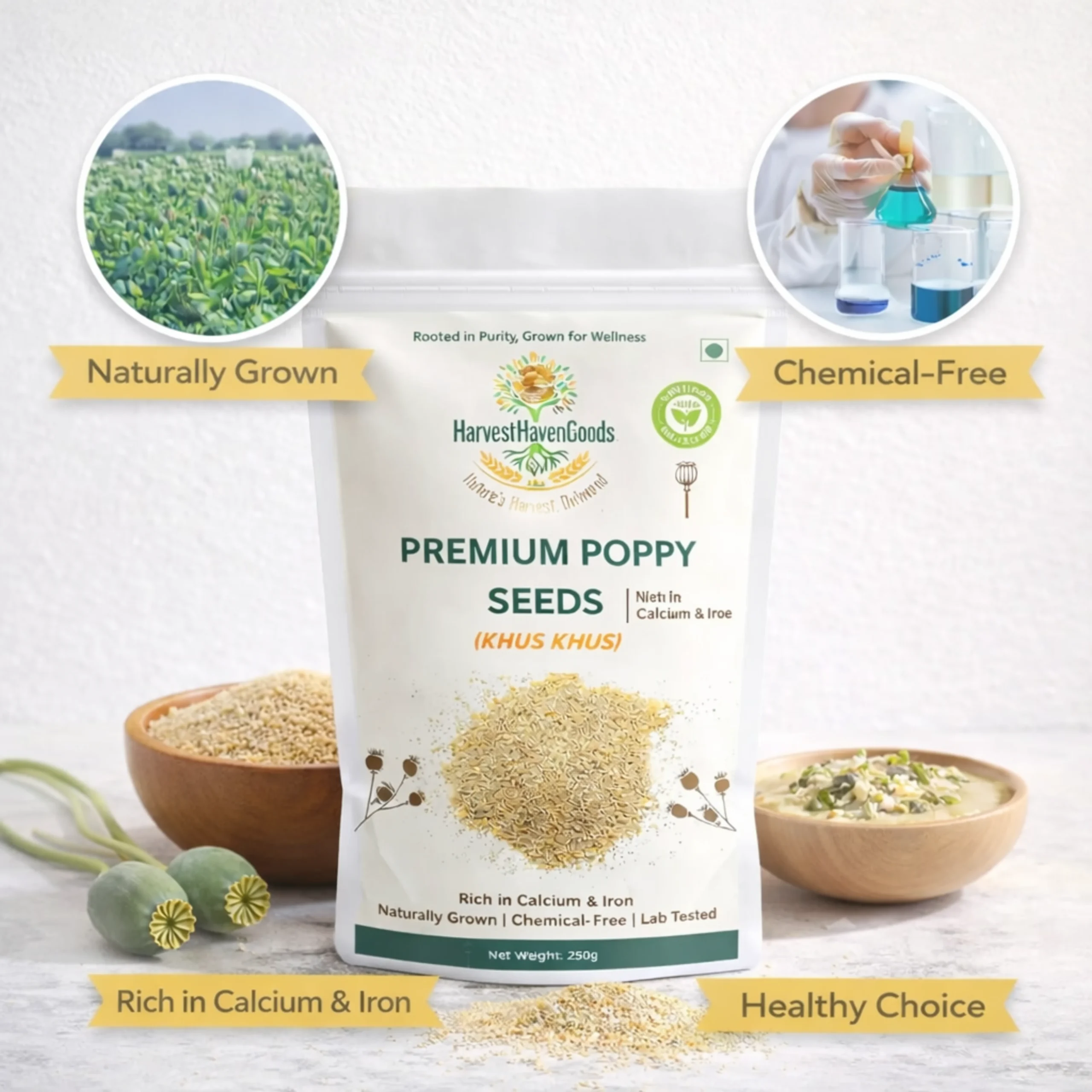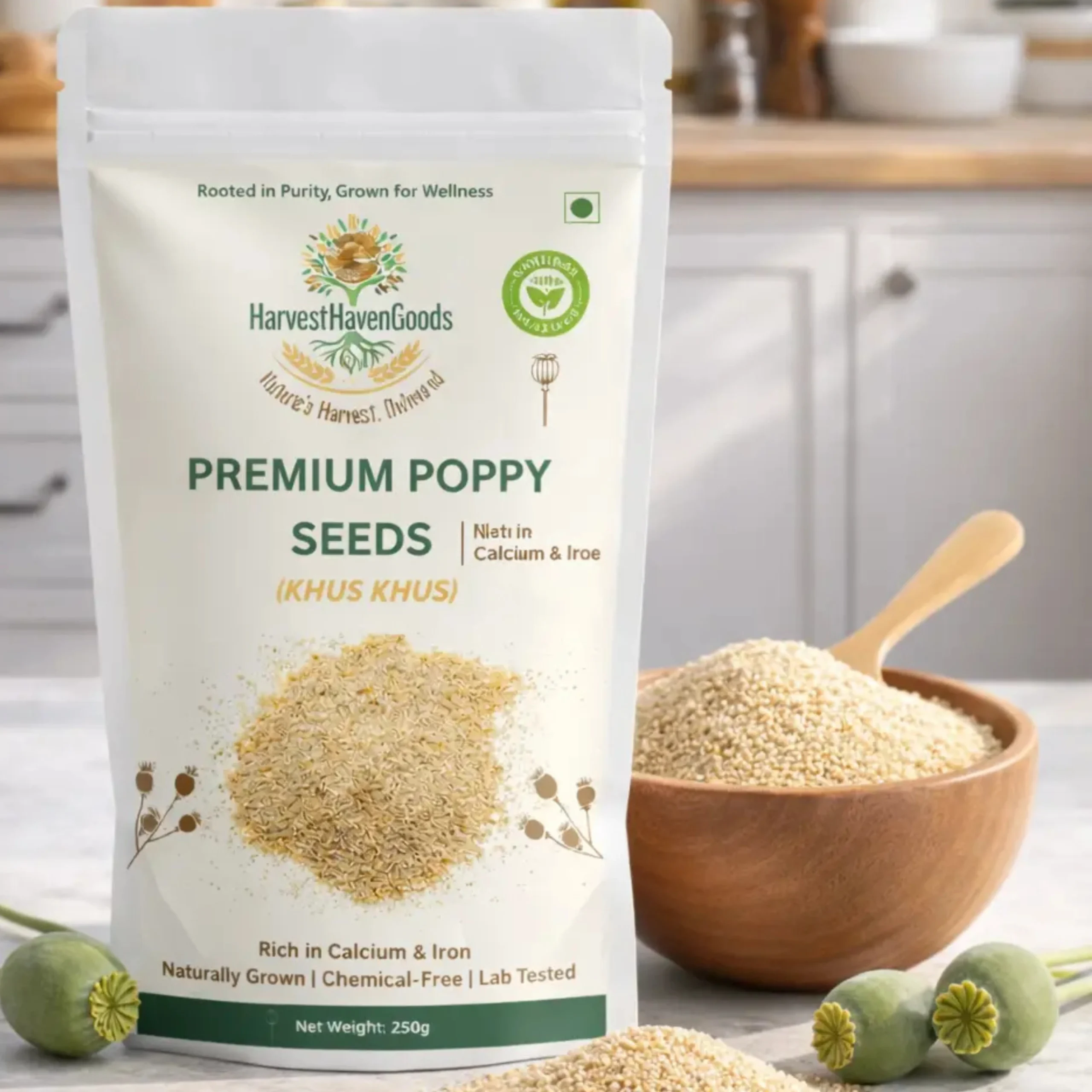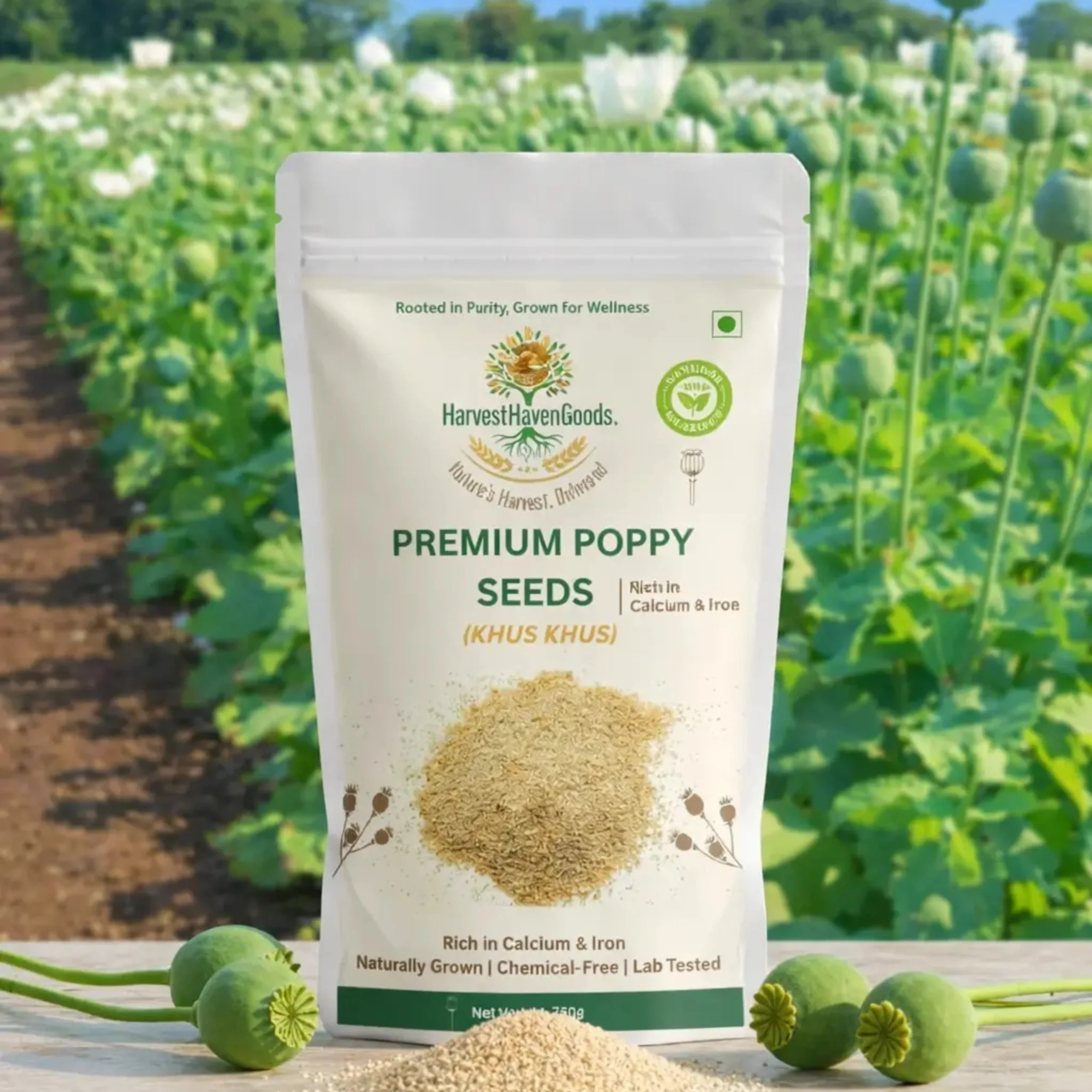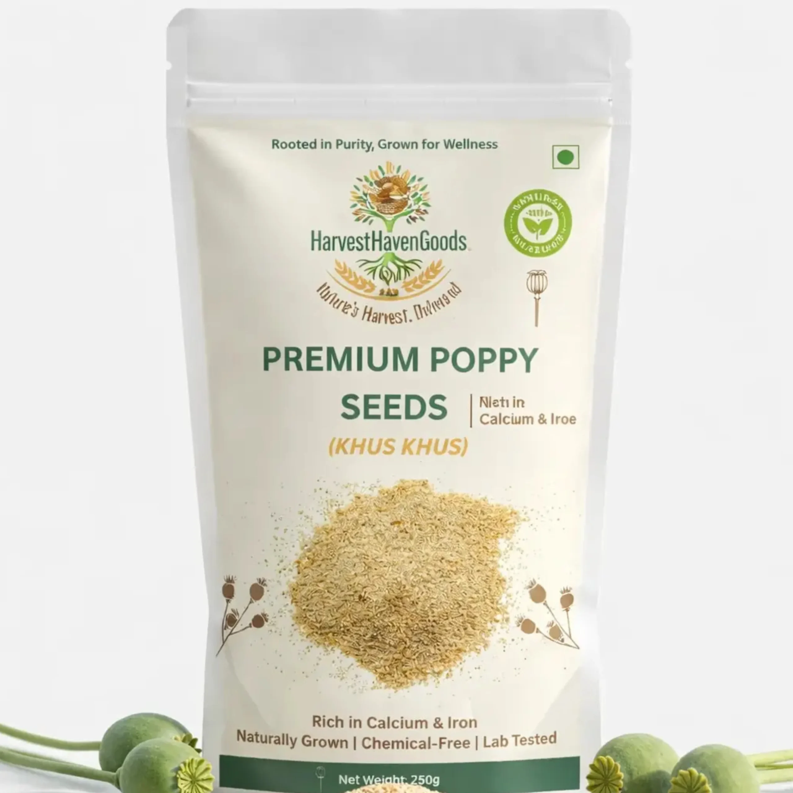 Discover the finest Premium Poppy Seeds (Khus Khus) from HarvestHavenGoods – your trusted source for naturally grown, chemical-free organic products. Sourced directly from certified farms, our poppy seeds are carefully selected, processed, and lab-tested to ensure you receive only the highest quality nutrition for your family.